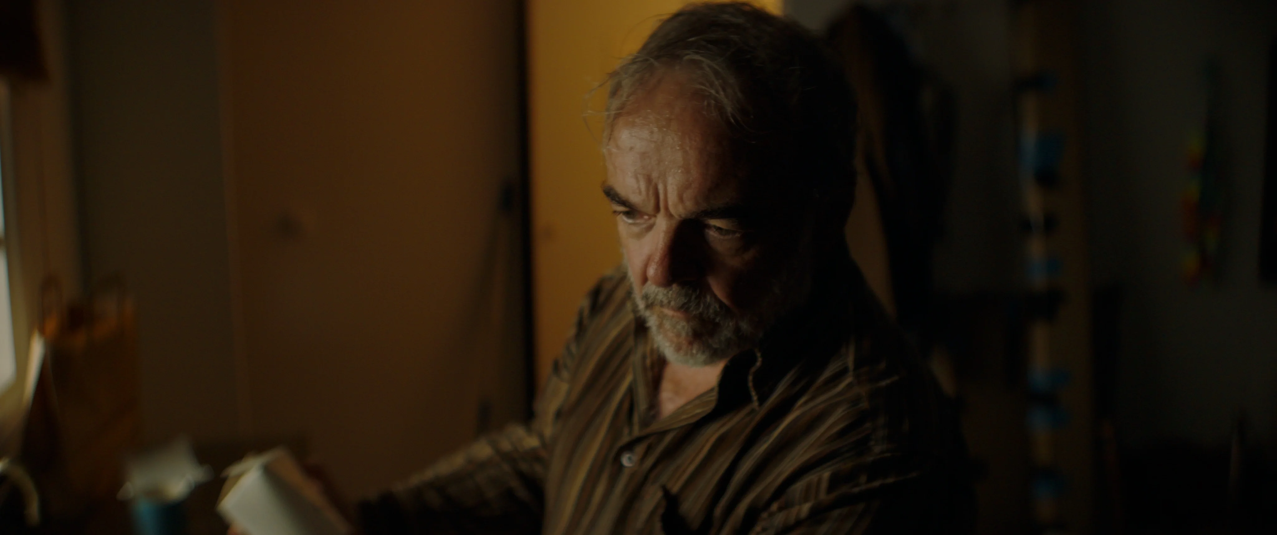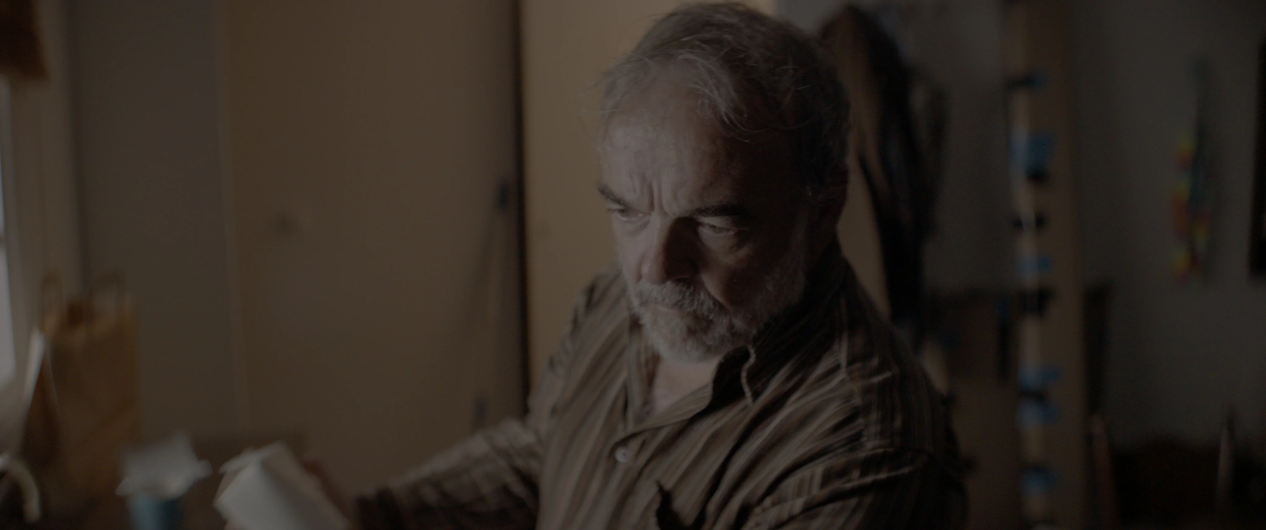 Deze korte film vroeg om een kille en grauwe sfeer. De regisseur wilde blauw, terwijl de cinematograaf meer richting groen dacht. Uiteindelijk zijn we uitgekomen op een blauw-groene look…